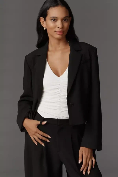 Crop Boxy Blazer Jacket In Black