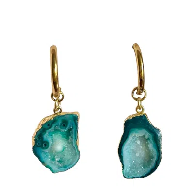 Women's Gold / Blue Aqua Swirl Circle Earrings In Multi