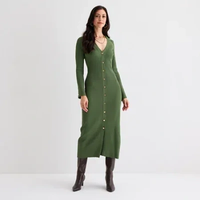 Womens Long Sleeve Midi Sweater Dress In Green