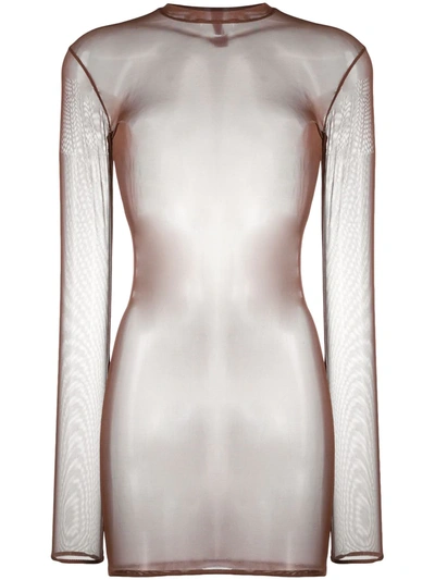 French Kiss Light Open-back Long-sleeve Dress In Brown