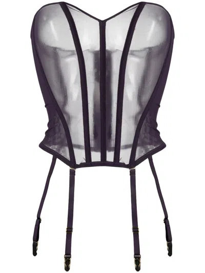 L'amoureuse Sheer-mesh Waspie Corset In Purple