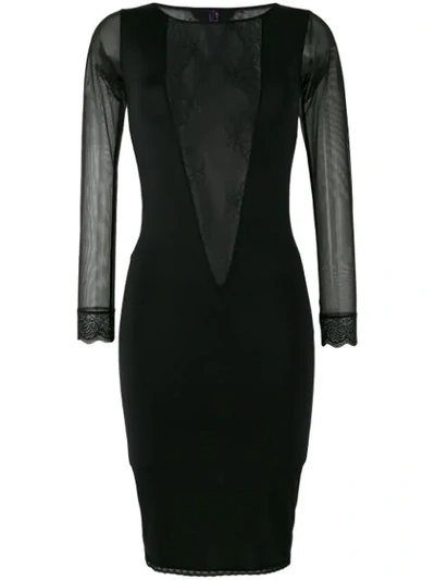 V-neck Long-sleeve Mini Dress In Black