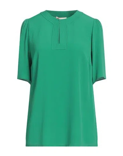Woman Top Green Size 14 Acetate, Silk