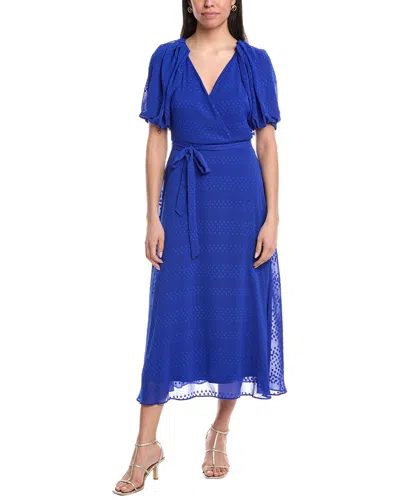 Floral Wrap Style Midi Dress In Ivory Slate In Blue