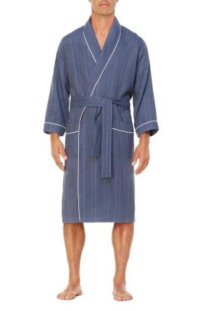 International Shawl Collar Woven Viscose & Cotton Robe In Blue