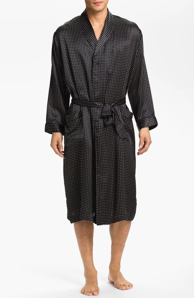 Men's Silk Dot Shawl Robe In Black