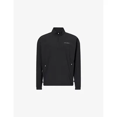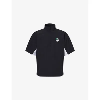 Mens Black High-neck Brand-print Stretch-woven Top In Blue