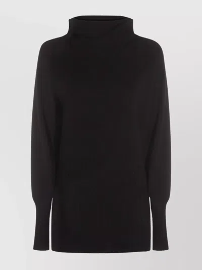 Ribbed Cowl Neck Knitwear With Long Sleeves In Black