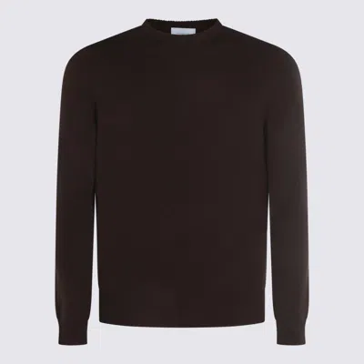 Long Sleeve Ribbed Hem Crew Neck Sweater In Brown