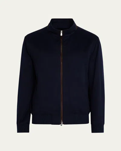Men's Cashmere Zip-front Blouson Jacket In Blue