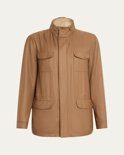 Men's Beaver Cashmere Suede-trim Full-zip Blouson In Black
