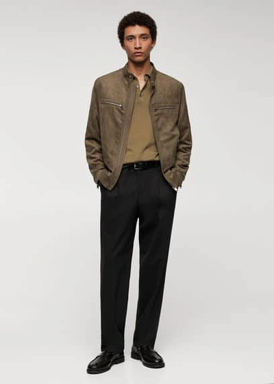 Suede-effect Jacket With Zip Khaki