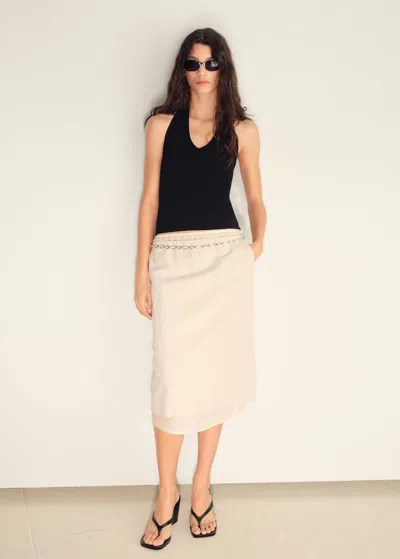 Linen Blend Draped Midi Skirt Gold