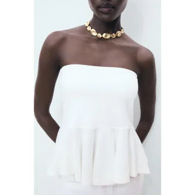 Bandeau Peplum Top In White