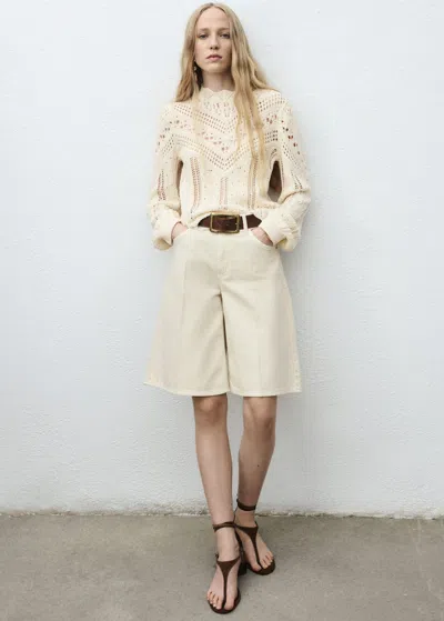Knitted Sweater With Openwork Details Ecru In Neutral