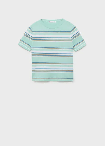 Short-sleeved Sweater With Combined Stripes Mint Green