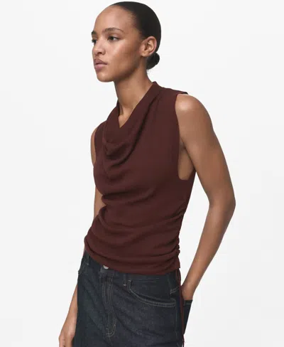 Ruched Cowl Neck Sleeveless Knit Top In Brown