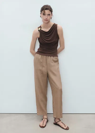 Linen Trousers With Drawstring Medium Brown