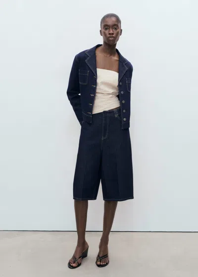 Mid-rise Denim Bermuda Shorts Open Blue