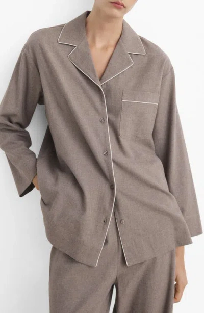 Contrast Piping Mélange Cotton Flannel Pajamas In Neutral