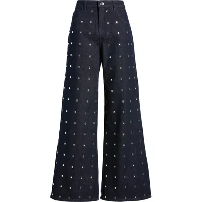 Leo Crystal Embellished Wide Leg Jeans In Blue