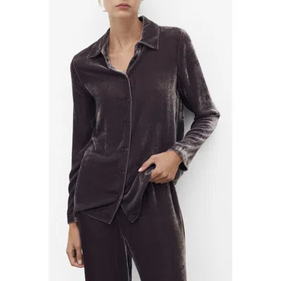 Long Sleeve Cotton V-neck Pajama Top In Brown