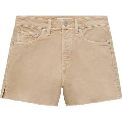 Button Fly Fray Hem Denim Shorts In Neutral