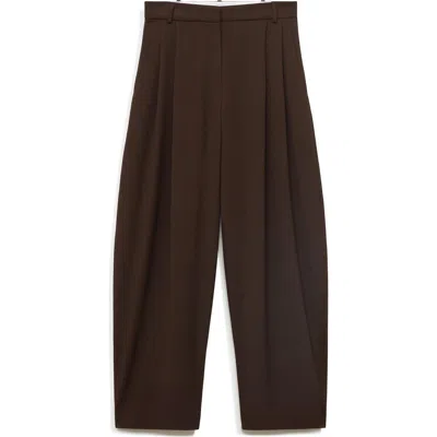 Pleated Straight Leg Pants In Brown