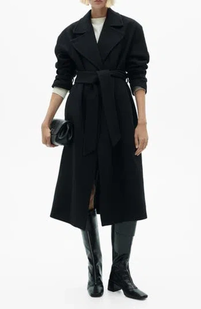 Wool Coat With Handmade Belt Black In Noir