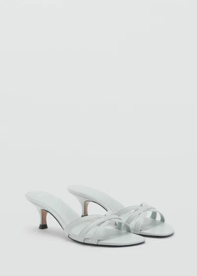 Heeled Sandal With Crossed Straps Silver In Metallic