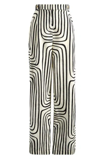 Scribble Print Linen Mix Wide Leg Pants In White