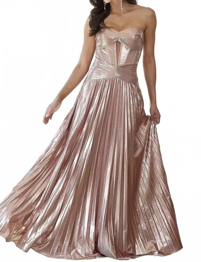 Magic In Motion Strapless Metallic Gown In Rose Gold In Pink