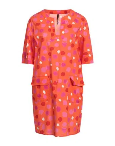 Woman Mini Dress Orange Size 4 Cotton, Elastane