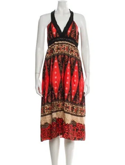 Pre-owned Printed Midi Length Dress In Orange