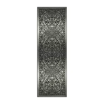 Modern Floral Collection Washable Skid Resistant Indoor Rectangular Runner In Gray