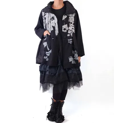 Hand-painted Tunic Top In Black With White Painted Design In Multi
