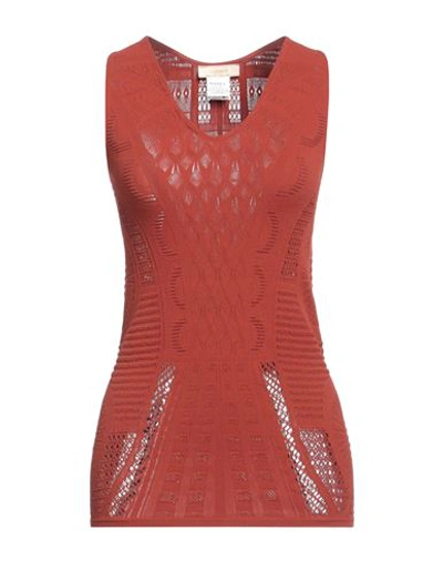 Woman Top Rust Size S/m Polyamide, Cotton, Elastane In Red