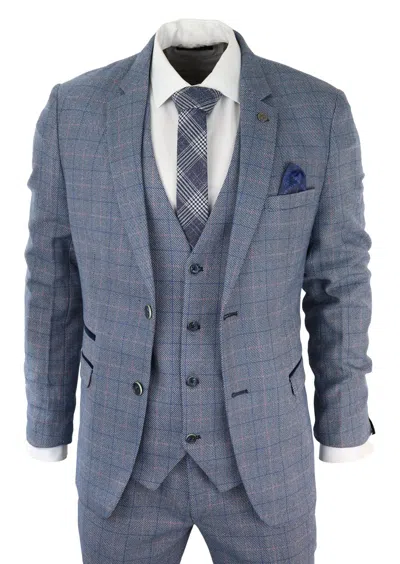 Jerry 3 Piece Check Suit In Blue