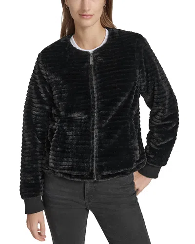 Andrew Marc Sport Women's Double Knit Glenplaid Hoodie Sweatshirt With Piping Sleeve Detail In Black