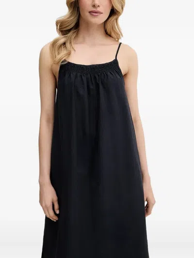 Smocked-detail Slip Dress In Black