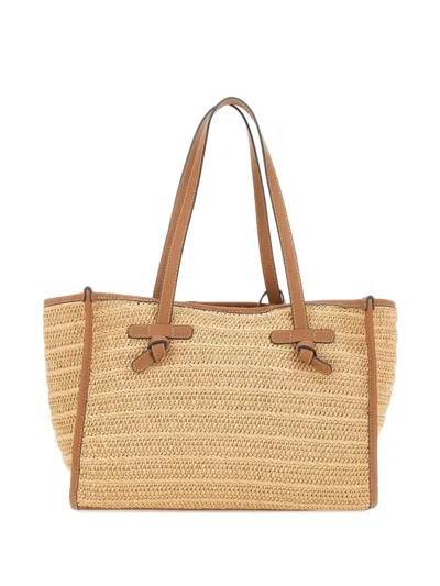 Medium Marcella Woven-straw Shoulder Bag In Brown