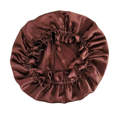 Women's Brown Pure Silk Double Layered Cap Adjustable Straps Coffee