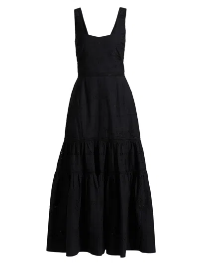 Women's Embroidered Cotton Sleeveless Tiered Maxi Dress In Black