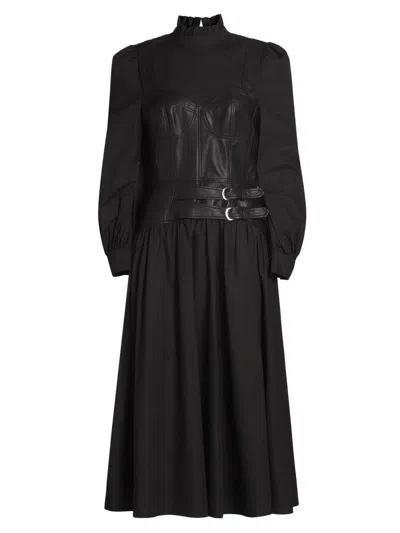 Women's Mix Media Cotton & Faux Leather Midi-dress In Multi