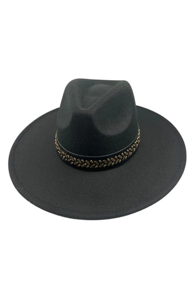 Studded Vegan Leather Trim Felt Fedora In Ivory