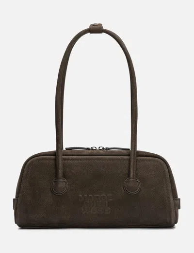 Elongated Soft Baguette Bag With Embossed Logo In Brown