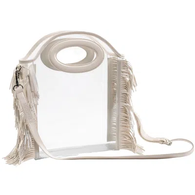 Women's White Clear Fringe Crossbody