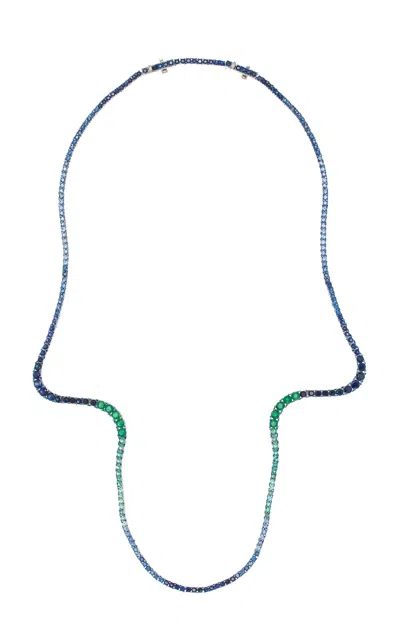 18k White Gold Emerald And Sapphire Necklace In Multi