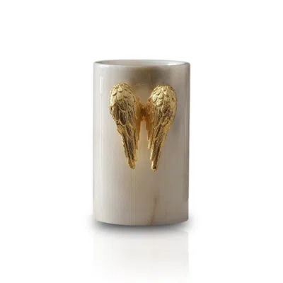 Gold / White Handcrafted Golden Angel Wing Marble Vase In Multi