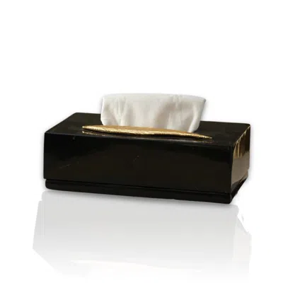 Gold / Black Black Marble Tissue Box With Brass Detail In Multi